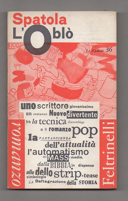 LIBROPrima edizione.Ottimo esemplare, con lievissima brunitura dovuta alla qualità della carta. Conserva cartolina editoriale.Il primo e unico romanzo di Adriano Spatola nella prima edizione Feltrinelli del 1964. Un’opera “pop” - come ci informano le parole scritte, con caratteri diversi e diverse dimensioni, sulla copertina sotto un disegno di Peter Saul - in cui convergono «la fantascienza dell’attualità -- l’automatismo dei mass-media, -- dalla Bibbia in dispense -- alla simbologia dello strip-tease» per rivelare «la deflagrazione della storia». In mezzo a questo materiale eterogeneo e fluido, i tre protagonisti - l’io narrante, il suo alter ego Guglielmo e il dott. Pietro - impegnati a costruire una trama che è in verità un collage di storie aperte verso nuove possibilità narrative ed espressive più che in loro stesse concluse. Destinato inizialmente a chiamarsi «Il buco nel muro» - con il titolo definitivo, «L’oblò», suggerito da Balestrini -, questa prima e sola avventura romanzesca di Spatola è un perfetto manifesto della sua sincera adesione alla neovanguardia, delle sue costruzioni parasurrealiste e della sua ricerca verso la “poesia totale”.