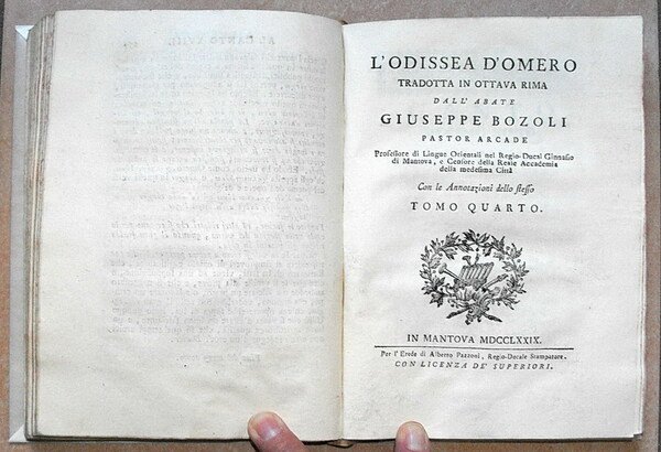 L'ODISSEA D'OMERO tradotta in ottava rima dal'Abate GIUSEPPE BOZOLI pastor Arcade (tomo I, II, III e IV)