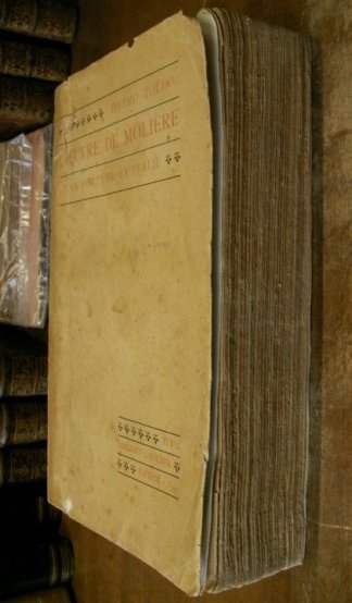 Volume in 4, brossura originale riparata e rinforzata, mancanze al dorso, occhiello, frontespizio, 578 pp., bianca finale. Saggio quanto mai completo, esplicativo ed esauriente sul grande commediografo e commediante francese, messo in relazione col suo e nostro tempo; analisi delle pieces e dei personaggi delle stesse, loro caratteri e caratteristiche; raffronti e conclusione delle e fra le opere del Moliere. Fortemente interessante, questo studio sulla Comedie comique si presenta in bello stato di conservazione ed da ritenersi poco comune.