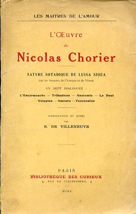 L'Oeuvre de Nicolas Chorier. Satyre sotadique de Luisa Sigea sur les Arcanes de l'Amour et de Vénus en sept dialogues: L'Escarmouche - Tribadicon - Anatomie - Le Duel - Voluptés . Amours - Fescennins. Introduction et notes par R. de Villeneuve