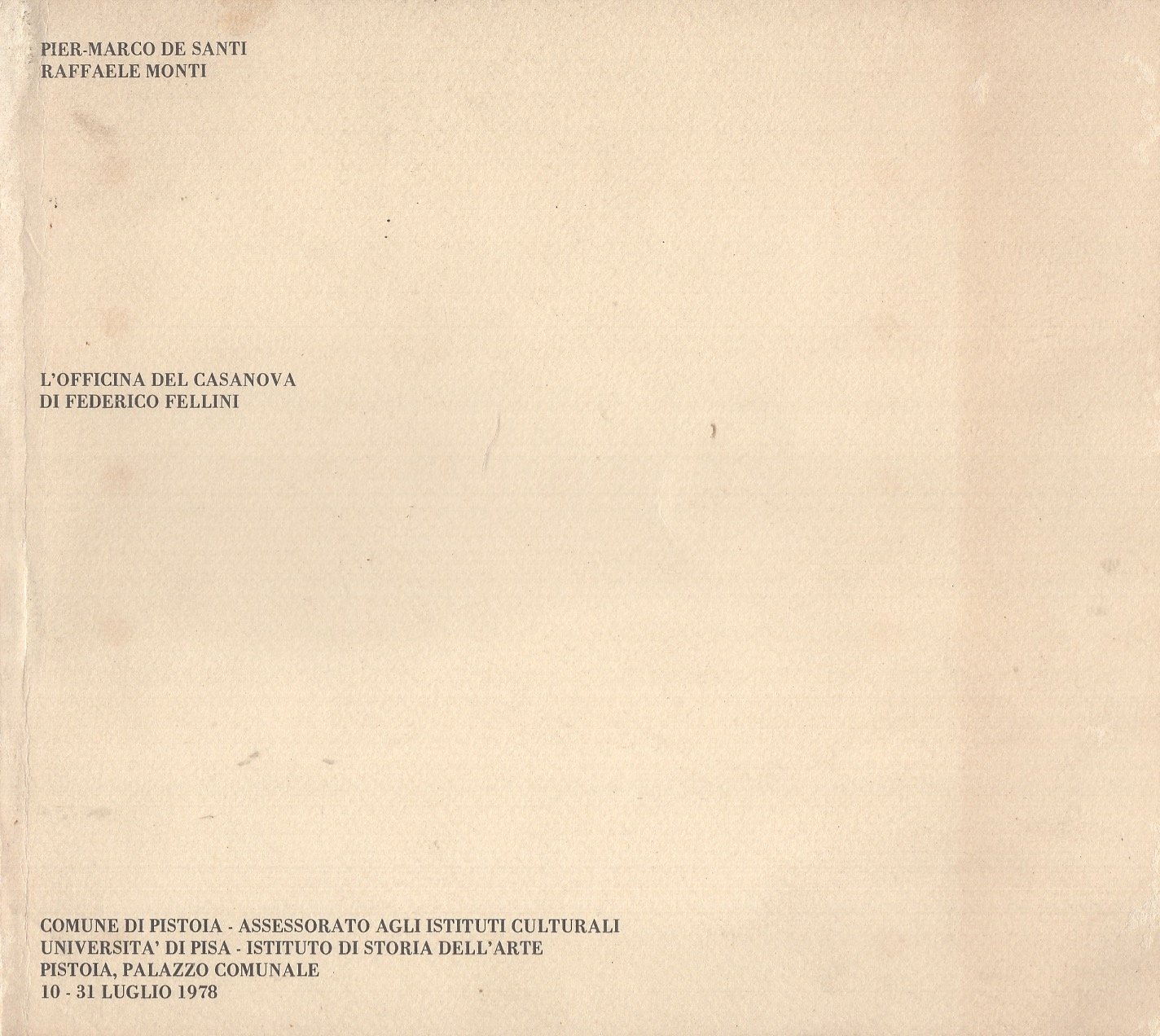 Con 50 figure nel testo. Catalogo della mostra tenutasi a Pistoia nel palazzo comunale 10-31 luglio 1978 organizzata dal Comune di Pistoia e dall'università di Pisa