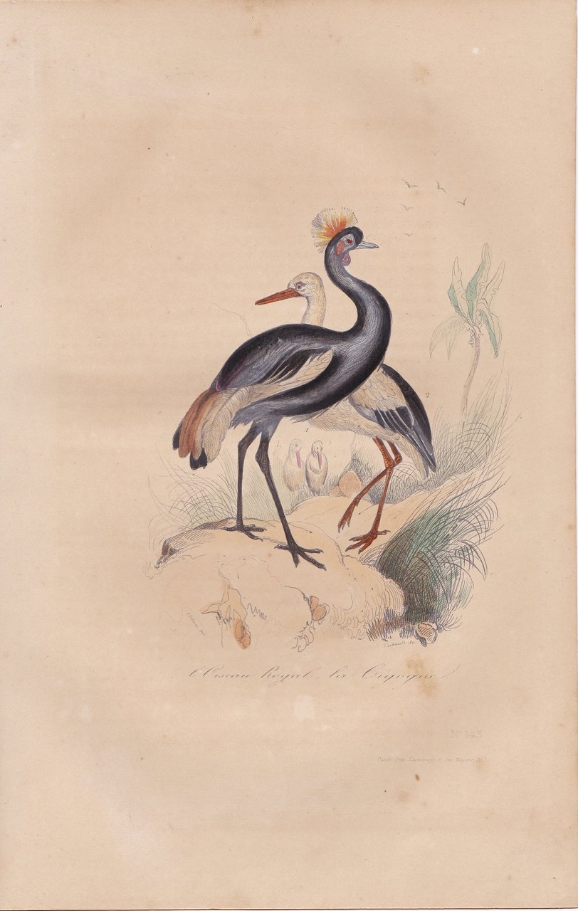 stampa originale Tratta dall'opera 'Keepsake d'histoire naturelle - Description des oiseaux suivie d'un exposé de l'art de les preparer et de les conserver' (Classification de Curvier, Texte de Buffon; revue, réduit et précédé d'une introduction par M. Achille Comte). Tavola n° 143. Stampa ottocentesca, acquerellata a mano. Dimensioni: 17,5 x 27 cm circa. Stato di conservazione: Un po' rifilata ai margini, qualche leggera e piccola macchiolina / ingialiimento ma, nel complesso, un esemplare decisamente buono. Opportunamente inquadrata, può diventare un raffinato oggetto d'arredamento.