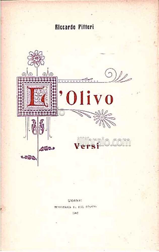 in 8°; pp. 50; br.; 1^ ed. Elegante edizione con frontespizio a colori, testatine e finalini liberty. Pitteri Riccardo, poeta (Trieste 1853 - Roma 1915). Carducciano, scrisse liriche patriottiche in difesa dell'italianità della sua terra.