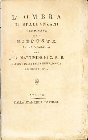 L'ombra di Spallanzani vendicata ossia risposta ad un'operetta del P.G. Martinenghi custode della parte mineralogica del Museo di Pavia