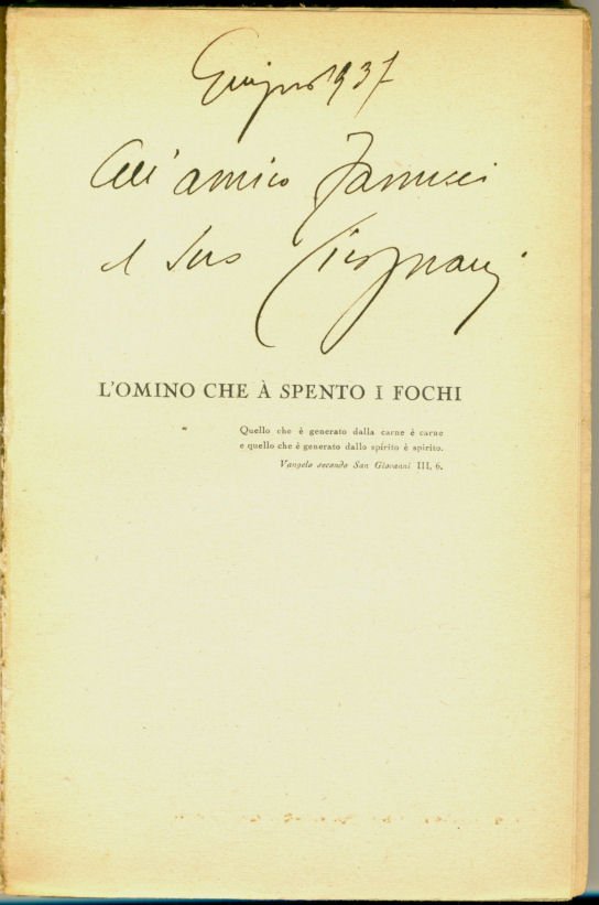 In 16, p. 272 [2], br. orig. con sovracop. - Prima ediz. con dedica autografa dell'a. all'occhietto.