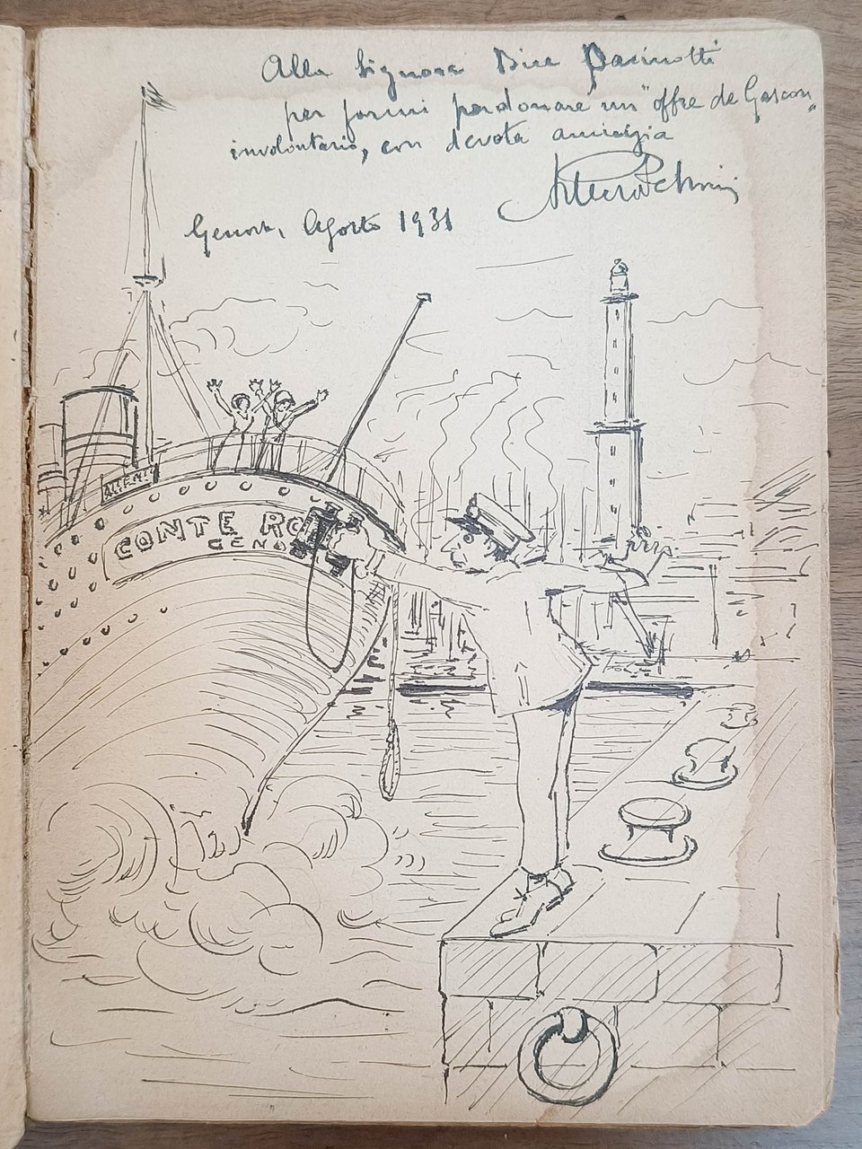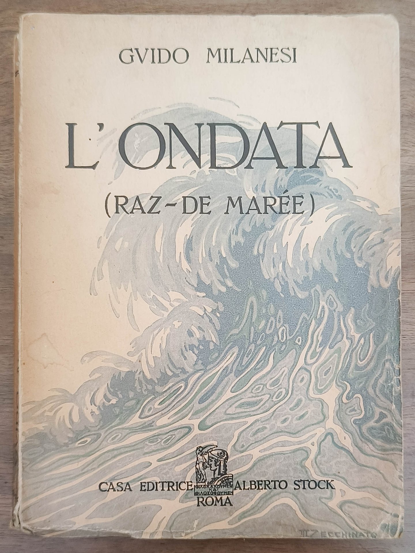 L'ondata (raz-de marée), Roma, Stock, 1931. Cm 19,5. Pp. 315. Brossura editoriale illustrata. Copertina con lievi segni d'usura e qualche strappo. Carte leggermente brunite, lieve gora d'acqua ai margini delle sole prime carte. Numerose illustrazioni nel testo di Arturo Petrini. Al risguardo disegno autografo dell'illustratore con dedica firmata e datata "alla signora Bice Pacinotti per farmi perdonare un offre de gascon involontario, in cui è rappresentata la partenza di una nave dal porto di Genova.