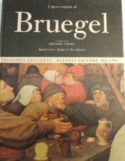 L’opera completa di Bruegel, presentazione di Giovanni Arpino, apparati critici e filologici di Piero Bianconi, Rizzoli Editore, Milano 1967, pp. 120, ill. b. n., 32 c. di tavv. ill. col., cm 32, cart. ed. Collana Classici dell’arte Rizzoli, n. 7. Il volume contiene: introduzione di Arpino - antologia critica - riproduzione a colori delle principali opere di Bruegel e di loro particolari - riproduzione in bianco e nero di tutti i dipinti dell’artista e loro analisi - biografia e bibliografia. Perfetto.