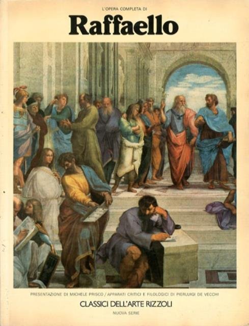 Nuova serie. 128 p., [64] p. di tav. : ill. ; 31 x 24 cm. Classici dell'arte. Raffaello Sanzio è stato un pittore e architetto tra i più celebri del Rinascimento italiano. Raffaello, ed è considerato uno dei più grandi artisti d'ogni tempo; la sua opera segnò un tracciato imprescindibile per tutti i pittori successivi e fu di vitale importanza per lo sviluppo del linguaggio artistico dei secoli a venire, dando vita tra l'altro ad una scuola che fece arte "alla maniera" sua e che va sotto il nome di manierismo. Modello fondamentale per tutte le accademie fino alla prima metà dell'Ottocento, la sua influenza è ravvisabile anche in pittori del XX secolo come Salvador Dalí. Presentazione di Michele Prisco. Apparati critici e filologici di Pierluigi De Vecchi. Brossura editoriale, copertina illustrata a colori, in cartoncino flessibile plastificato. Titolo impresso al piatto e al dorso. All'interno numerose illustrazioni in b/n e a colori. Codice libreria 3041.