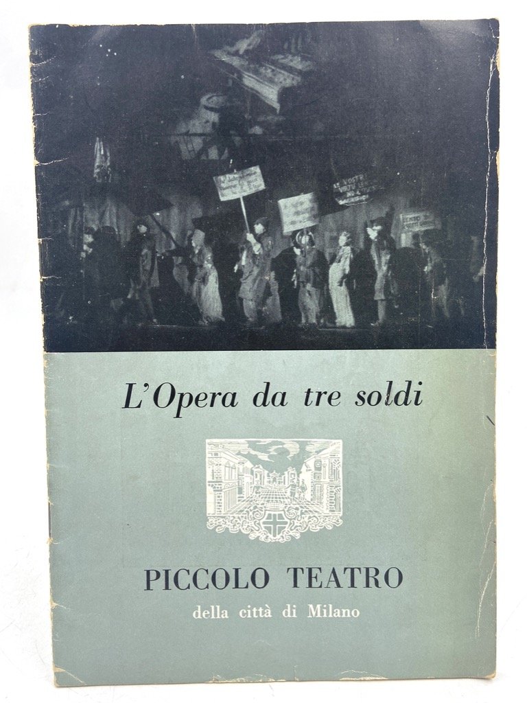 Spillato in brossura editoriale illustrata, cm 21.5 x 14, pp (24) con alcune illustrazioni in nero. Programma di sala del Piccolo Teatro per l’Opera da Tre Soldi di Berthold Brecht e Kurt Weill, stagione 1958-1959, regia di Giorgio Strehler; con un breve testo di Paolo Chiarini.