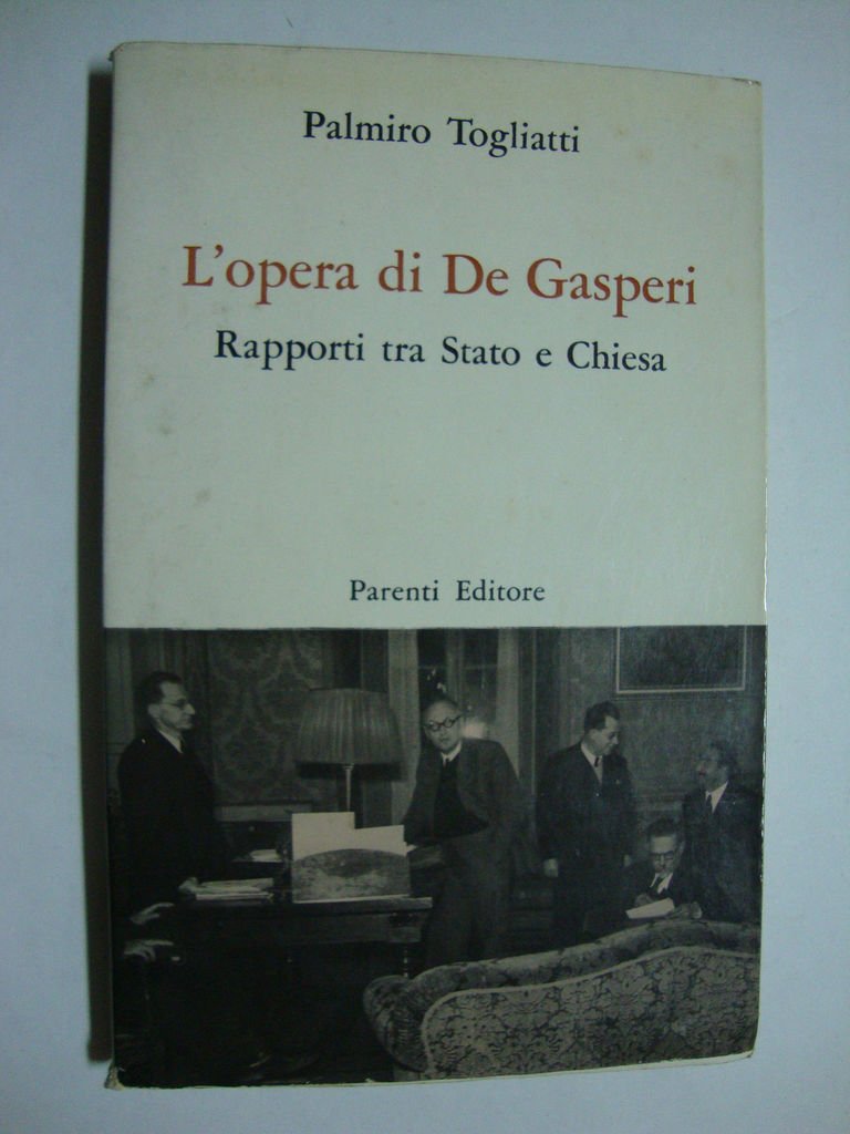 (Collana : Testimonianze del tempo - n. 45) Si segnala in coperta una bella fotografia nella quale vengono ritratti all'interno del Gabinetto di De Gasperi: lo stesso De Gasperi, Nenni, Togliatti, Lussu e Cattani - DETTAGLIO DELLE CONDIZIONI : Segni d'uso in coperta e minuto strappo nel retro della stessa; firma dell'originario proprietario alla carta di guardia - (61e).