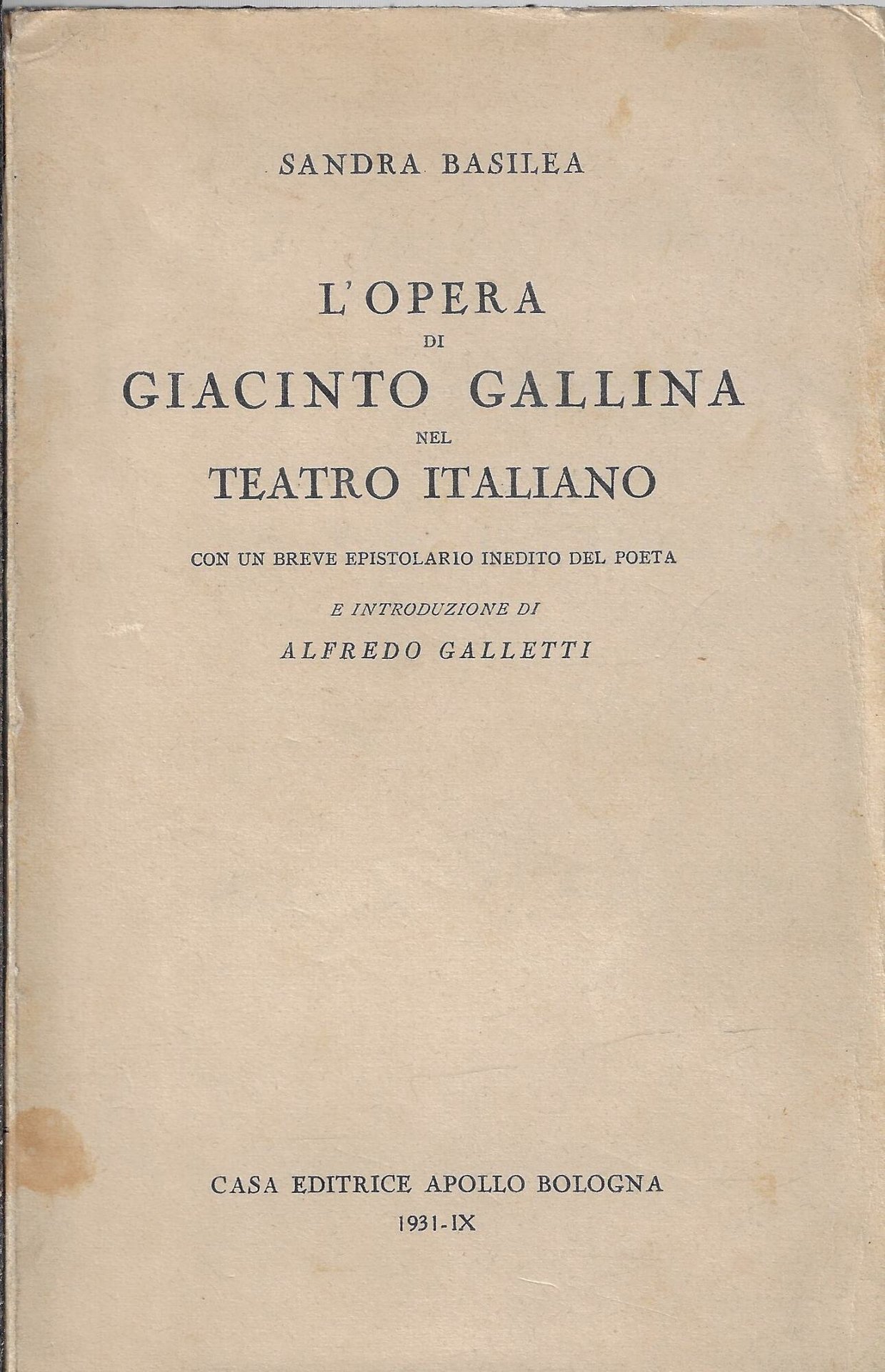 L'opera di Giacinto Gallina nel teatro italiano : con un breve epistolario inedito del poeta