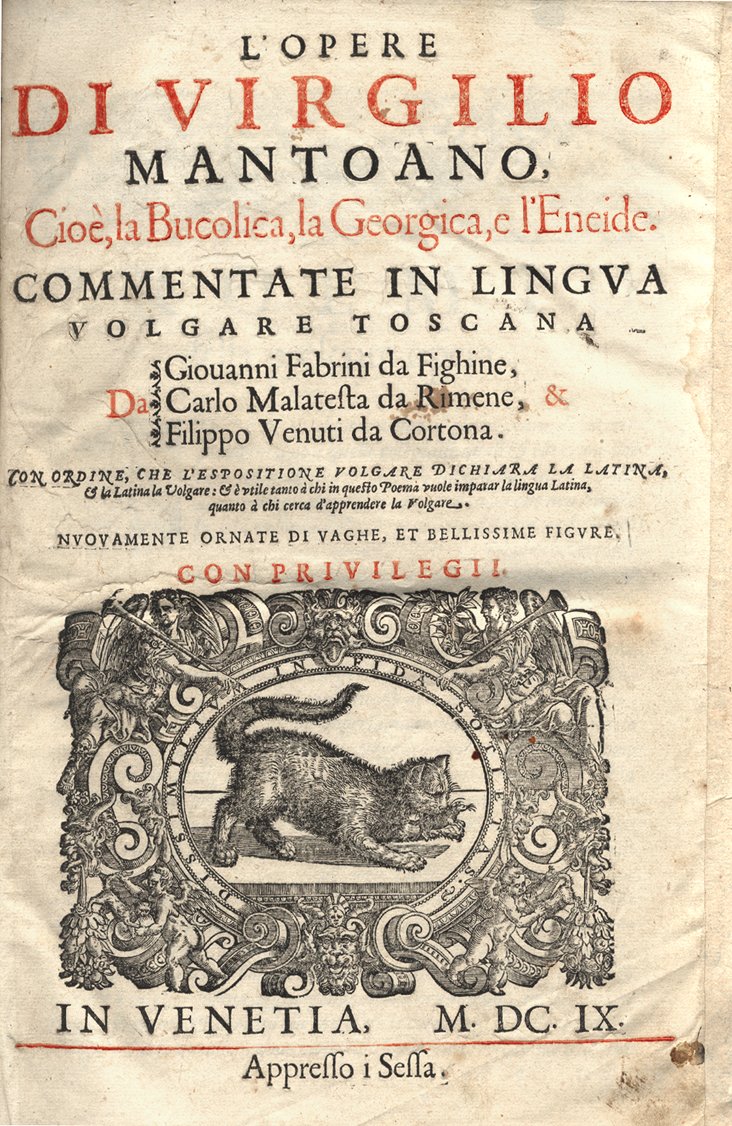 L' opere di Virgilio mantoano, cioè, la Bucolica, la Georgica, e l'Eneide. Commentate in lingua volgare toscana da Giov. Fabrini, Carlo Malatesta, Fil. Venuti. Con ordine che l'espositione volgare dichiara la latina, & la latina la volgare ... Nuovamente ornate di vaghe, et bellissime figure.