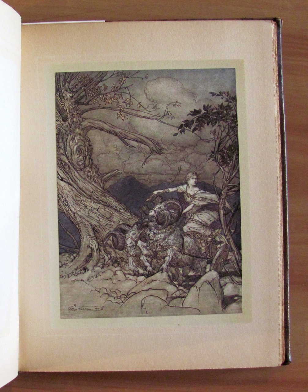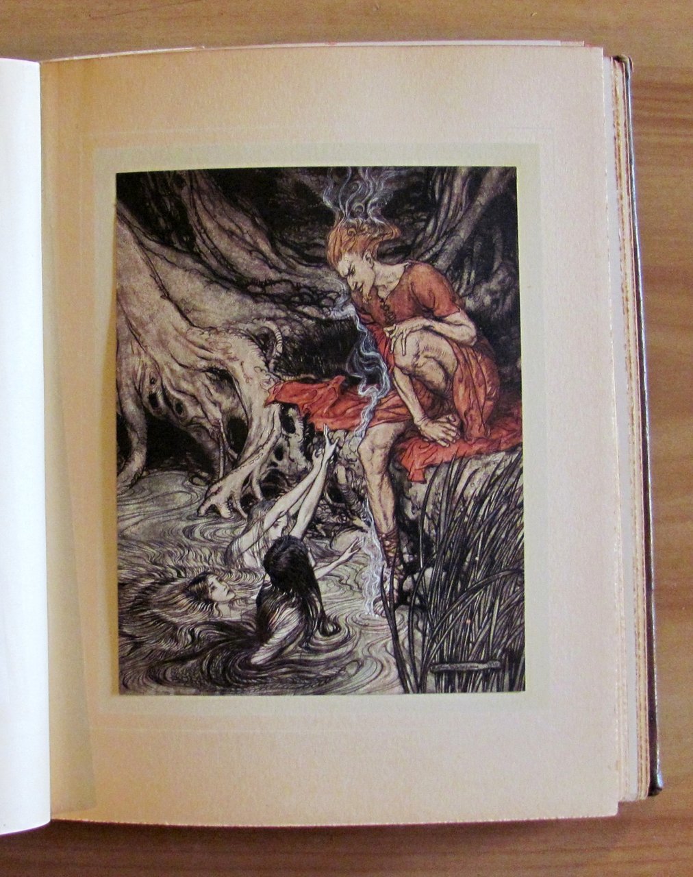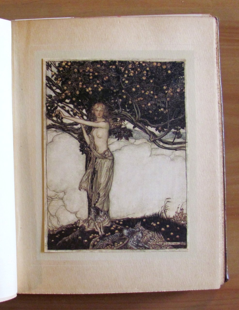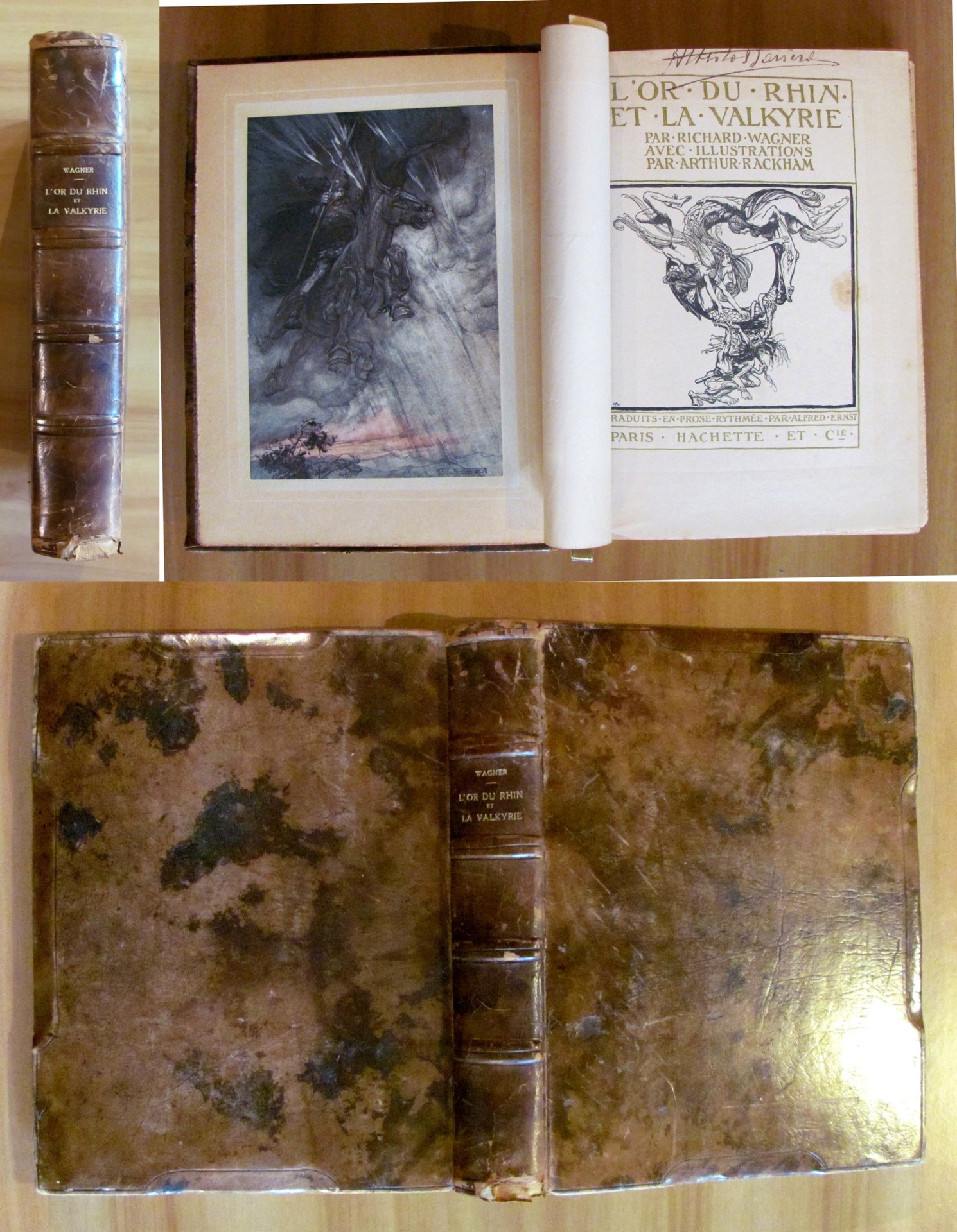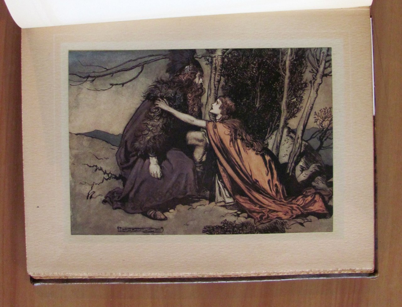 Testatine e finalini in b/n n.t. e 34 splendide tavole applicate f.t. su cartoncino beige, tutte protette da velina parlante, di Arthur Rackham. Ed. Hachette et Cie. - Paris, s.d. ma 1911 Bella rilegatura in piena pelle con modanature smussate ai margini esterni delle copertine e nervi al dorso con titoli in oro. Lievi abrasioni della pelle al margine alto e basso della cerniera anteriore e alle cuffie del dorso. Firma di vecchia appartenenza all'occhietto e al frontespizio. Libro perfettamente solido con interni freschi e puliti. 19,5x25; pp.158. Le foto non rendono neppure lontanamente la bellezza delle illustrazioni. Raro e in Ottimo stato. , Molto buono (Very Good)