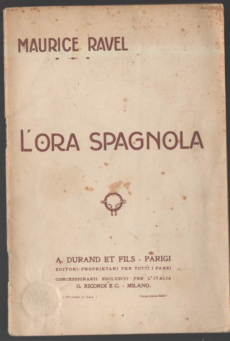 In 16, br. edit., pp. 40. Libretto d'opera risalente presumibilmente al 1907, musiche di Ravel. Timbro di vendita al frontespizio. Affrancatura d'epoca al piatto inf. Fioriture alla cop. e pagine leggermente ingiallite, ma ottima leggibilite buono stato di conservazione. Rarit Luogo di pubblicazione ParisEditore A.Durand Et FilsAnno pubblicazione Primi del NovecentoMateria/Argomento Musica ***Due to bureaucratic reasons, books dated over 70 years old cannot be immediately exported, please contact us before placing the order.***