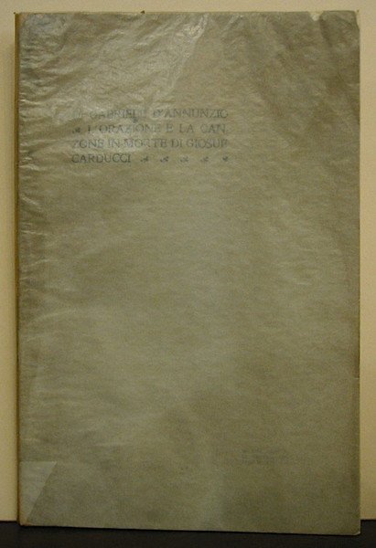 4to (cm. 29,2), (4)48(2) pp. Copertina editoriale a stampa in nero. Edizione originale. Aloni di umidità marginali, ma buon esemplare. De Medici, 67; Guabello, 159; Vecchioni, 35.