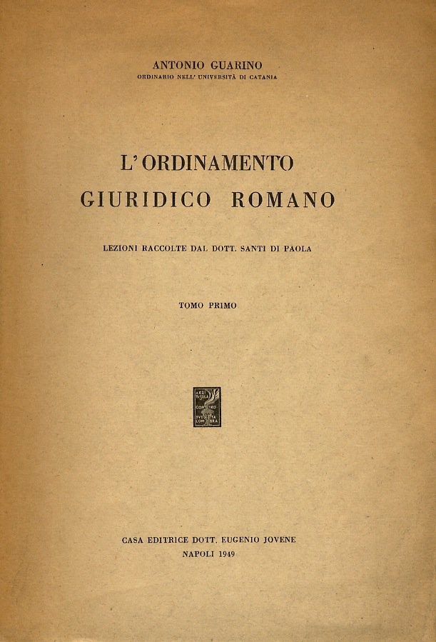 L'ordinamento giuridico romano. Lezioni. Raccolte dal Dott. Santi Di Paola. Tomo I.