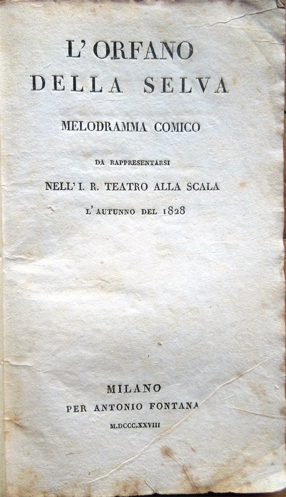 L'orfano della selva. Melodramma comico da rappresentarsi nell'I. R. Teatro alla Scala l'autunno del 1828