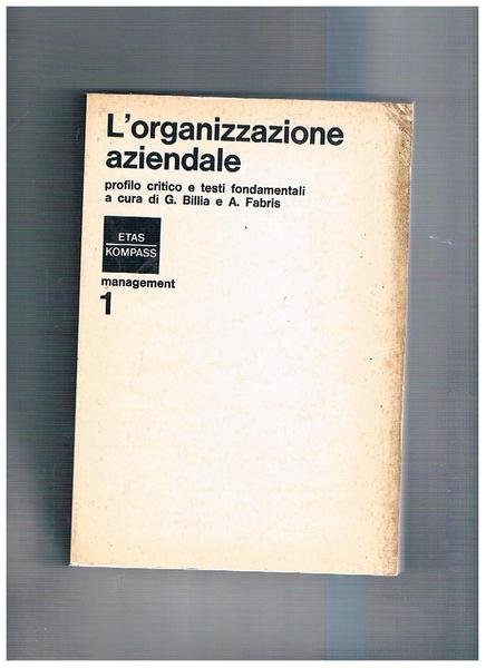 L'organizzazione aziendale. Profilo critico e testi fondamentali a cura di G. Billia e A. Fabris. Presentazione di Pasquale Saraceno.