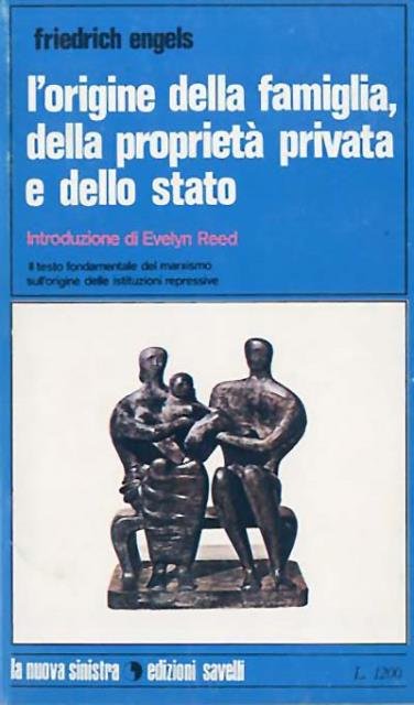 222 p. ; 19 x 11 cm. Cultura politica, 110. Il fortunato incontro con l'opera dell'etnologo americano Lewis Henry Morgan (1818-1881) ispirò a Marx il proposito, attuato poi da Engels in quest'opera, di riassumere i concetti da essi elaborati in varie occasioni durante decenni, sulla storia delle società primitive e della famiglia antica e moderna. "L'origine della famiglia, della proprietà privata e dello Stato" fu pubblicato infatti da Engels nel 1884, ma i suoi temi sono già enunciati nelle opere giovanili di Marx ed Engels, in particolare nell'"Ideologia tedesca" (1845-46) dove, nel porre le basi e i presupposti di una storiografia materialistica, si rifiuta innanzitutto la contrapposizione tra storia e preistoria. Introduzione di Evelyn Reed. Brossura editoriale, coperta illustrata a colori in cartoncino flessibile plastificato lucido. Codice libreria 9139.