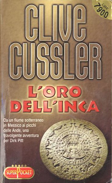 535 p. : ill. ; 18 x 11 cm. Superpocket, 115. L'opera narra le avventure di Dirk Pitt. Nel 1532 una flotta di navi approda in segreto su un'isola. Una volta arrivati nascondono un magnifico tesoro, poi scompaiono, lasciando solo un grande demone di pietra a guardia delle ricchezze. Nel 1578 il leggendario Sir Francis Drake cattura un galeone spagnolo pieno di oro e argento Inca, compresa la chiave del tesoro perduto, appartenuta all'ultimo Inca Huascar. Il galeone di Drake si appresta a tornare in Inghilterra, ma un terremoto sottomarino provoca una massiccia ondata che spazza via la nave. Solo un uomo sopravvive per raccontarlo. Nel 1998 un gruppo di archeologi rischia di morire annegato durante un'immersione nelle profondità di una piscina sacra sulle Ande in Perù. Gli studiosi vengono salvati dal tempestivo arrivo del famoso esperto di immersioni Dirk Pitt, che si trova nella zona per una spedizione. Durante il salvataggio Pitt trova nella foresta amazzonica un oggetto misterioso chiamato quipu, appartenuto alla defunta civiltà Inca, in grado, forse, di trovare il tesoro di re Huascar. La vita di Pitt viene messa in pericolo da alcuni contrabbandieri, anch'essi sulle tracce del tesoro. Pitt con i suoi fedeli compagni, accompagnati dalla Dr. Shannon Kelsey, una bella giovane archeologa, si trovano coinvolti quindi nella ricerca della catena d'oro. Titolo originale dell'opera: «Inca gold». Traduzione di Ilide Carmignani. Brossura editoriale, copertina illustrata a colori in cartoncino flessibile plastificato lucido. Codice libreria 5461.