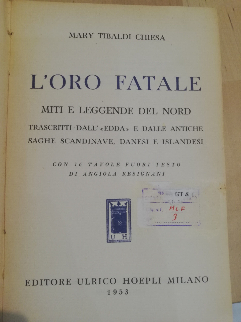 L'oro fatale. Miti e leggende del Nord, Mary Tibaldi Chiesa, Hoepli, 1953