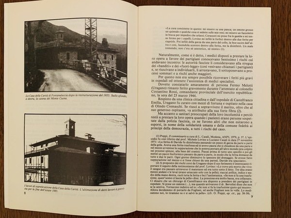 (21X13,7 cm); (4), 40 pp. Opuscolo. Corrispondenza dell'Alpi di Modena e del Comune di Frassinoro, relativa alla sottoscrizione per la Casa di carità di Fontanaluccia a ricordo dell'ospedale partigiano della Repubblica di Montefiorino e all'organizzazione della cerimonia di inaugurazione; invito, manifesto e volantini dell'inaugurazione della casa di carità, avvenuta il 16 agosto 1985. Opera in buono - ottimo stato di conservazione.