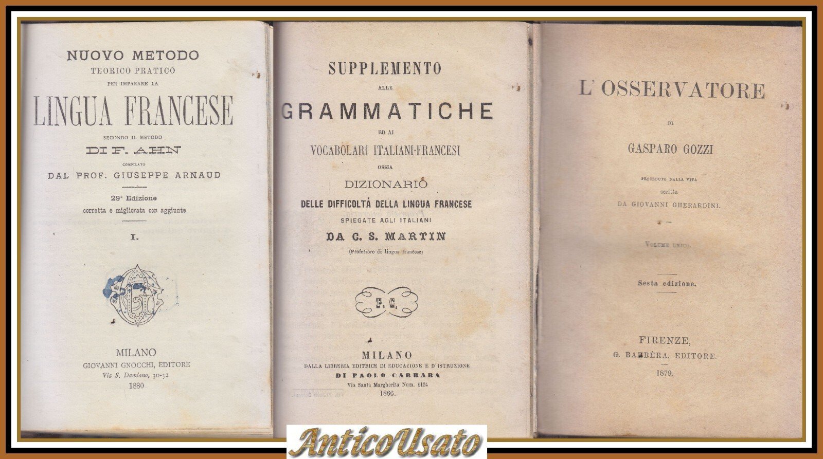 L'OSSERVATORE di Gozzi 1879 Nuovo metodo imparare francese 1880 Arnaud dizionari