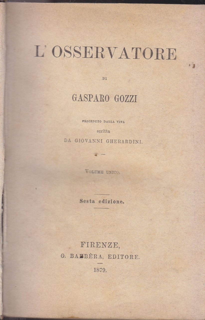 “L’osservatore, preceduto dalla Vita scritta da Giovanni Gherardini” di Gasparo Gozzi.