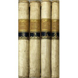 • Tasselli del dorso bicromatici, tagli marmorizzati. Rari forellini di tarlo estinto all\'ultimo volume