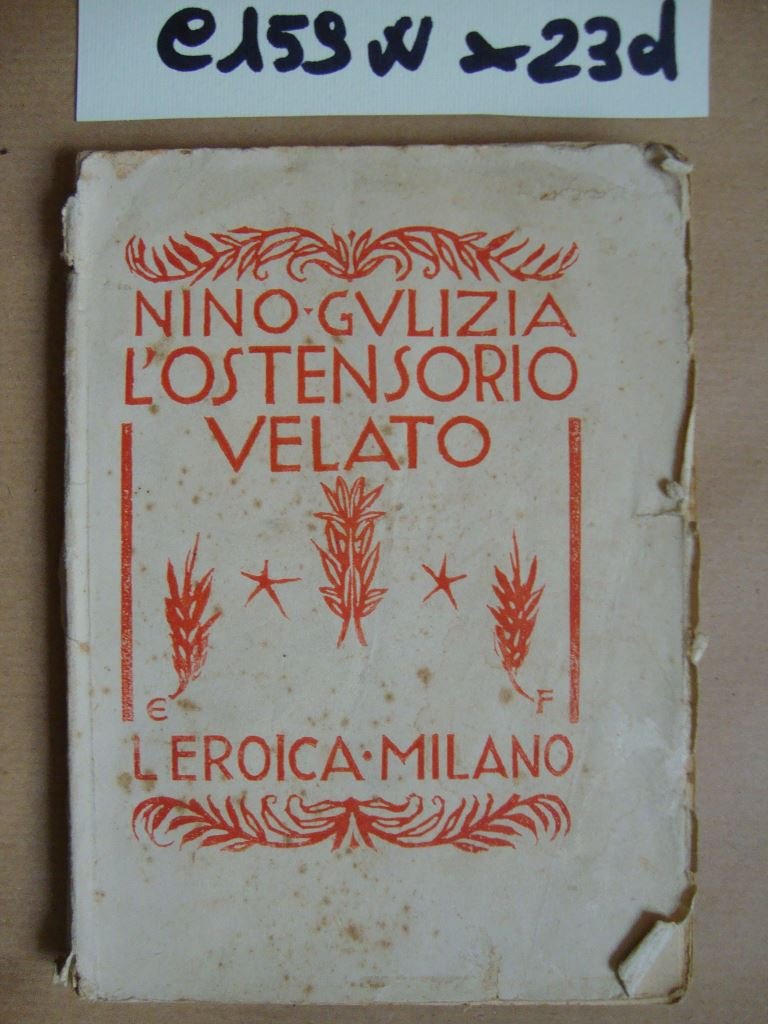 Libriccino di poesie con la particolarità di dedica autografa dell'A. datata Caltagirone, maggio '26. Gulizia è noto per aver realizzato per la serie di Cento Città di Sonzogno la monografia su Caltagirone - DETTAGLIO DELLE CONDIZIONI : Dorso gravemente danneggiato e con carenze; strappi, fioriture ed orecchiette ai piatti; qualche fioritura anche all'interno; ma complessivamente esemplare del tutto accettabile - (23d).