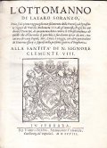 L'OTTOMANNO DI LAZARO SORANZO, DOVE SI DA' PIENO RAGGUAGLIO NON SOLAMENTE DELLA POTENZA DEL PRESENTE SIGNOR DE' TURCHI MEHEMETO III.- ALLA SANTITA' DI N. SIGNORE CLEMENTE VIII
