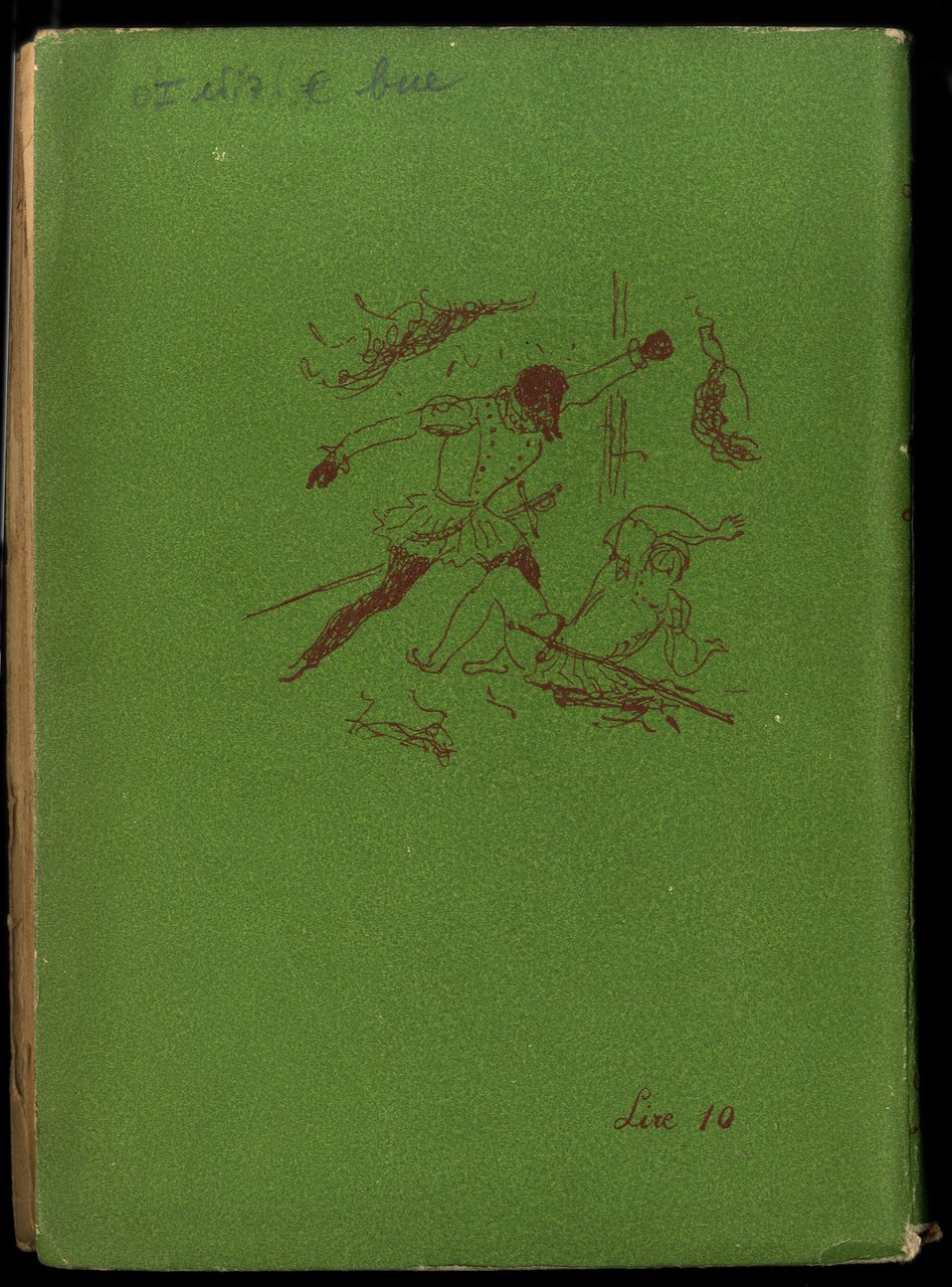 >in-16, pp.(8), 218, (4), copertina con illustrazione al tratto a due colori disegnata da Scipione. Prefazione di Emilio Cecchi. Edizione originale. Esemplare discreto, con mancanze al dorso. ASOR ROSA p. 46. SPADUCCI p. 34.