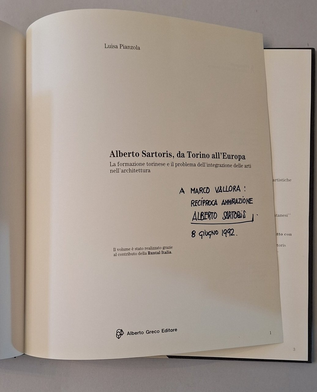 L. PIANZOLA ALBERTO SARTORIS DA TORINO ALL'EUROPA A. GRACO ED. 1990 AUTOGRAFATO