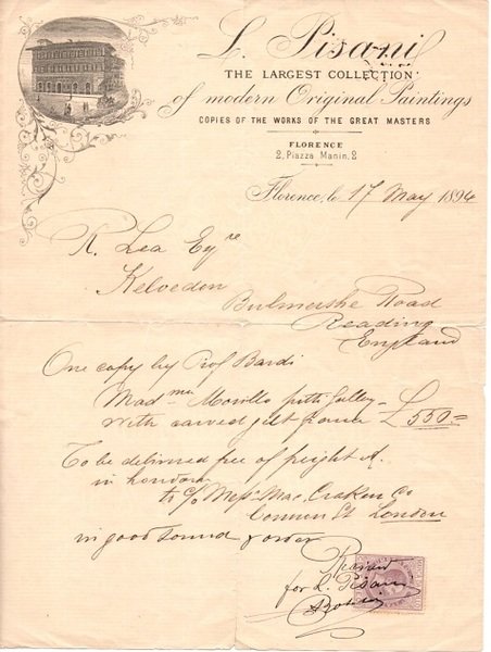 Foglio filigranato di formato 27x20 cm. Condizioni : USATO - Stato : Buono, ordinari segni d'uso e del tempo. Qualche strappo alle pieghe. Altre note : Lettera scritta nel 1894. Nella vedutina oltre ad un ornamento floreale è presente l'edificio dello galleria Pisani. La lettera è scritta sia davanti che dietro.