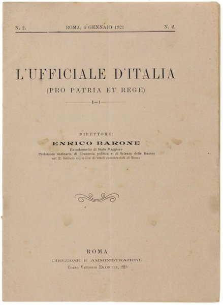 L'UFFICIALE D'ITALIA (Pro Patria et Rege). N. 2 - 6 gennaio 1921.