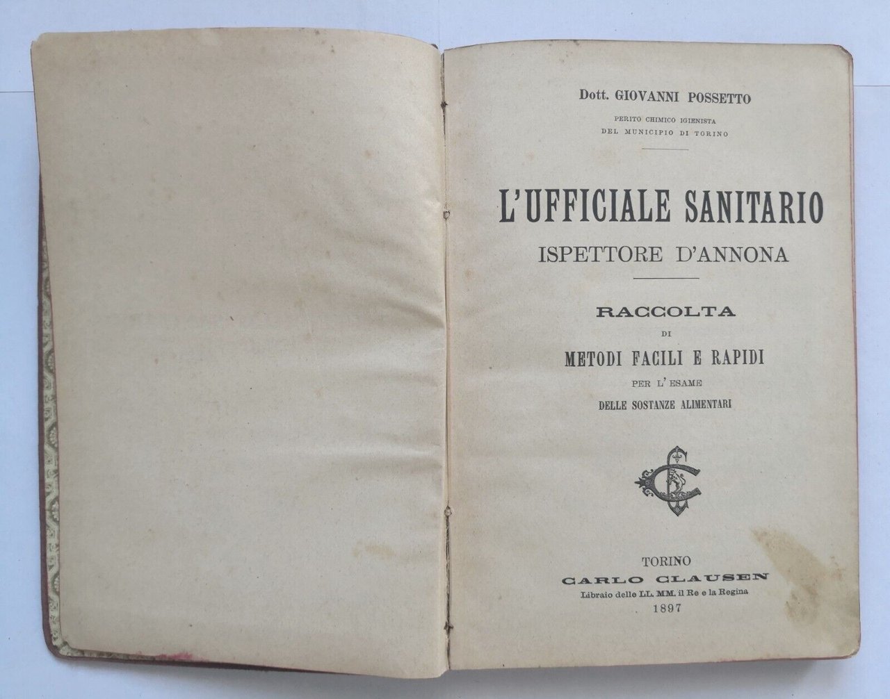 L'UFFICIALE SANITARIO ISPETTORE D'ANNONA di Giovanni Possetto 1897 Clausen Libro