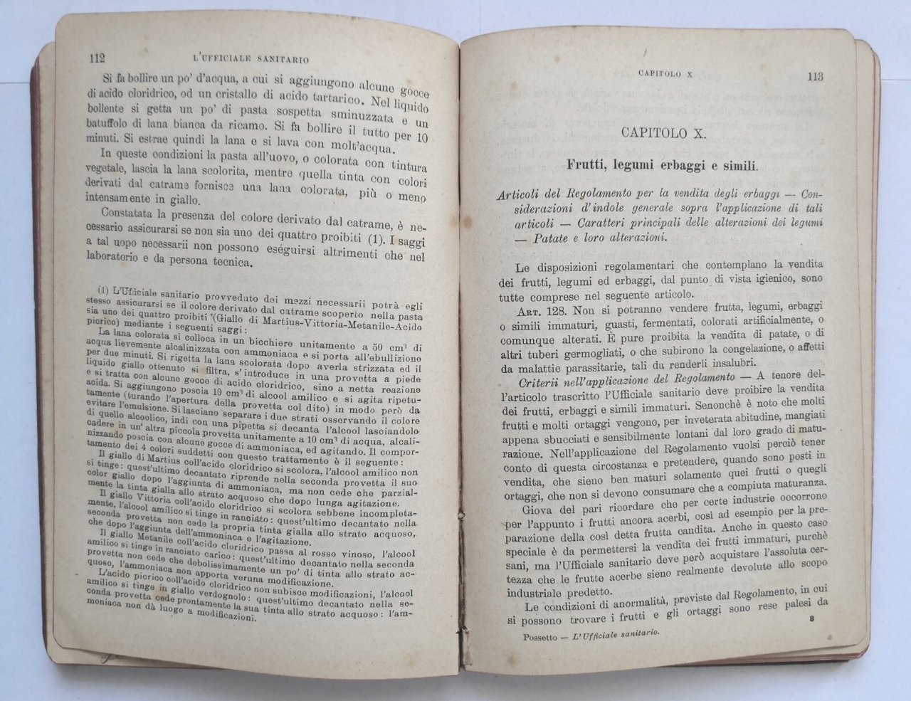 L'UFFICIALE SANITARIO ISPETTORE D'ANNONA di Giovanni Possetto. Raccolta di metodi facili e rapidi per l'esame delle sostanze alimentari.