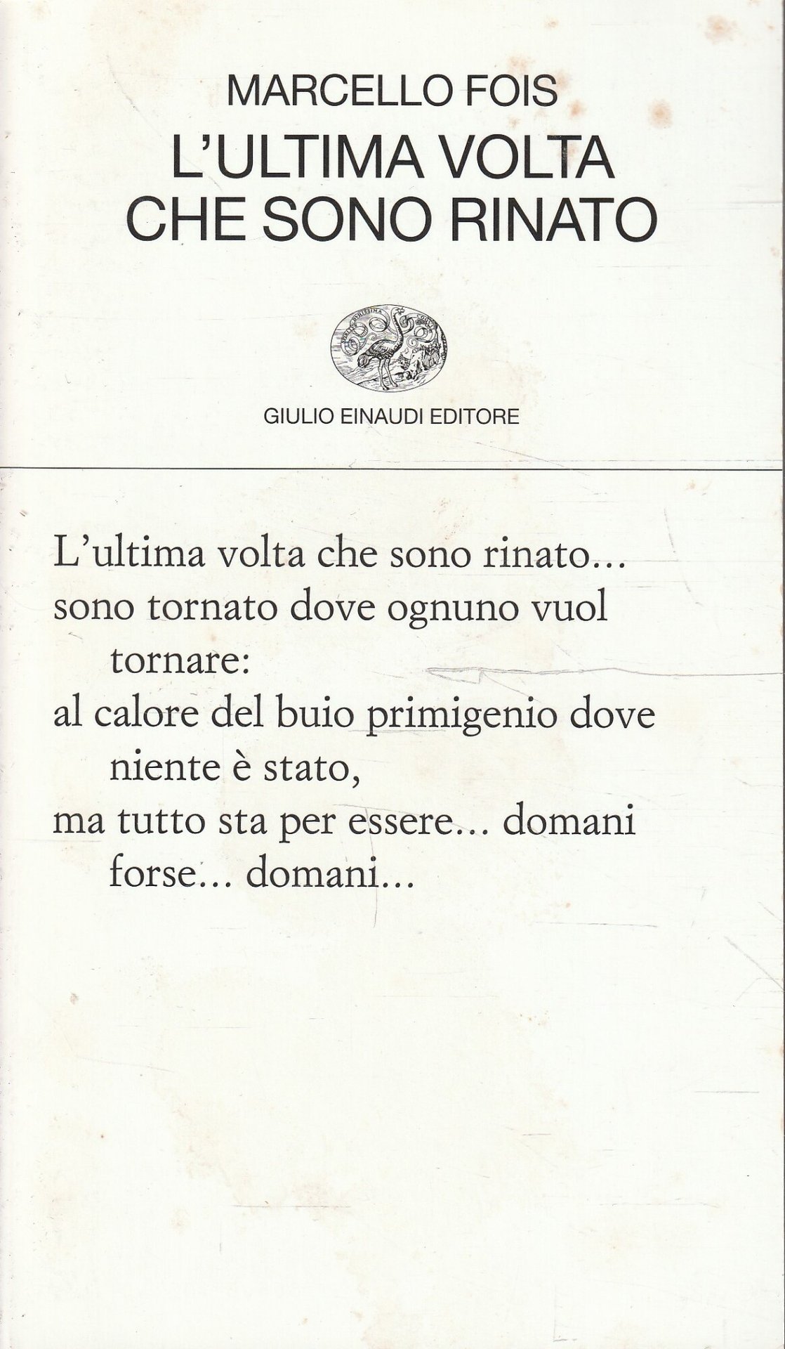 POESIABrossura editoriale,volume in discrete condizioni a causa di lievi fioriture sulla copertina, interno in buono stato70 pagine circacopertina come da foto