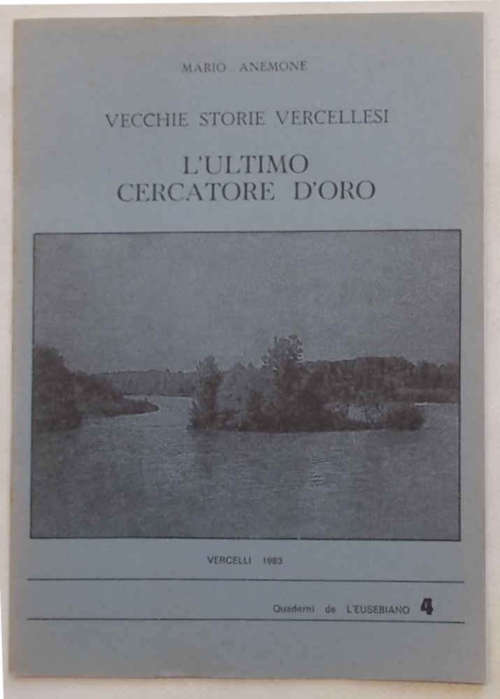 In 8° (cm. 24 x 17); pagg. 23; con illustraz. fotog., schizzi e cartine n.t.; bross. originale figur. VG. ** Vecchie storie vercellesi. Quaderni de "L'Eusebiano" n. 4. "I dettagli tecnici delle originali ingegnerie che riuscivano a escogitare i cercatori d'oro sul greto dei nostri fiumi e cogliere l'aspetto umano e sofferto di quel lavoro che concedeva a chi lo praticava poche soste e scarse gioie" (Oddo Battagliero)