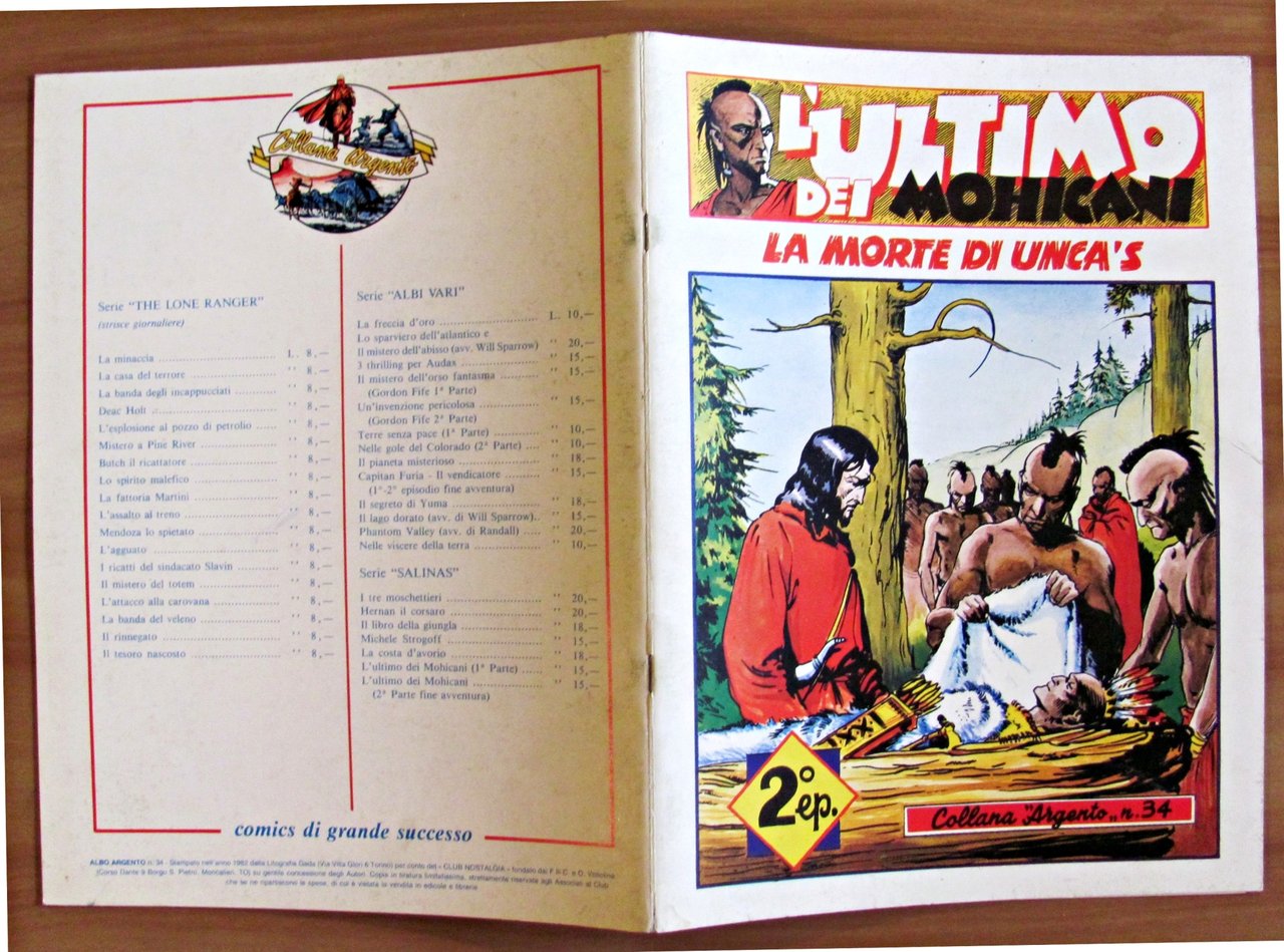 L'ULTIMO DEI MOHICANI - La Morte di Unca's - Coll. Argento N.34 - Ristampa
