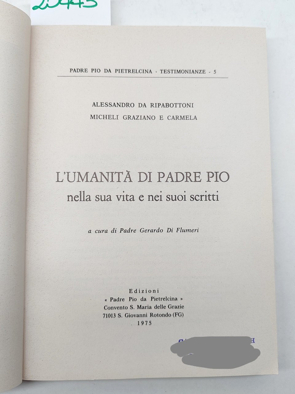 L'umanità di Padre Pio nella sua vita e nei suoi scritti Testimonianze 5 1975