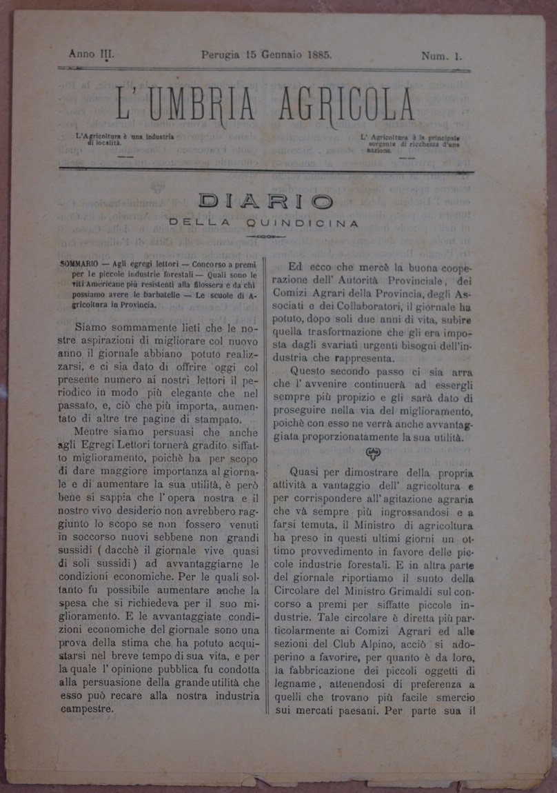 L'UMBRIA AGRICOLA GIORNALE DI ECONOMIA RURALE E DELLE INDUSTRIE CAMPESTRI ANNO III - NUM. 1 15 GENNAIO 1885