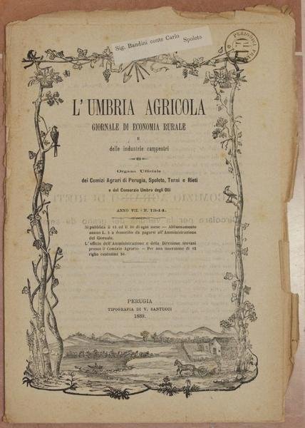 L'UMBRIA AGRICOLA GIORNALE DI ECONOMIA RURALE E DELLE INDUSTRIE CAMPESTRI ANNO VII - NUM. 21-22 15 E 30 LUGLIO 1889