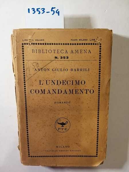 (Collana : Biblioteca Amena) Romanzo - DETTAGLIO DELLE CONDIZIONI : Intonso - coperta danneggiata, staccata, ingiallita e con fioriture - pagine ingiallite con fioriture - (1.VI.4).