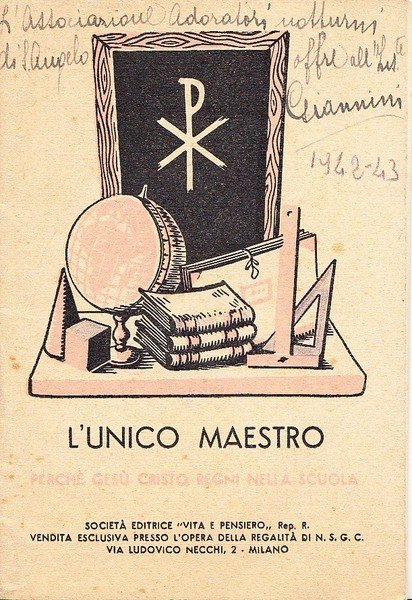 L'unico maestro perchè Gesù Cristo regni nella scuola. Opera della regalità di N. S. Gesù Cristo Milano. Adoratori notturni di S. Angelo Lodigiano.