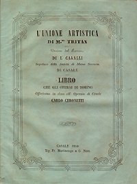 24 p. ; 20 cm. Da leggere: “Artisti ! La vostra condizione nell’attuale societa’ e’ miserabile .”. Libretto tradotto dal francese dal segretario della Societa’ di Mutuo Soccorso di Casale, e distribuito per spronare all’associazionismo gli artisti italiani. Brossura originale decorata perfetta. Aloni ai margini delle pagine. ****
