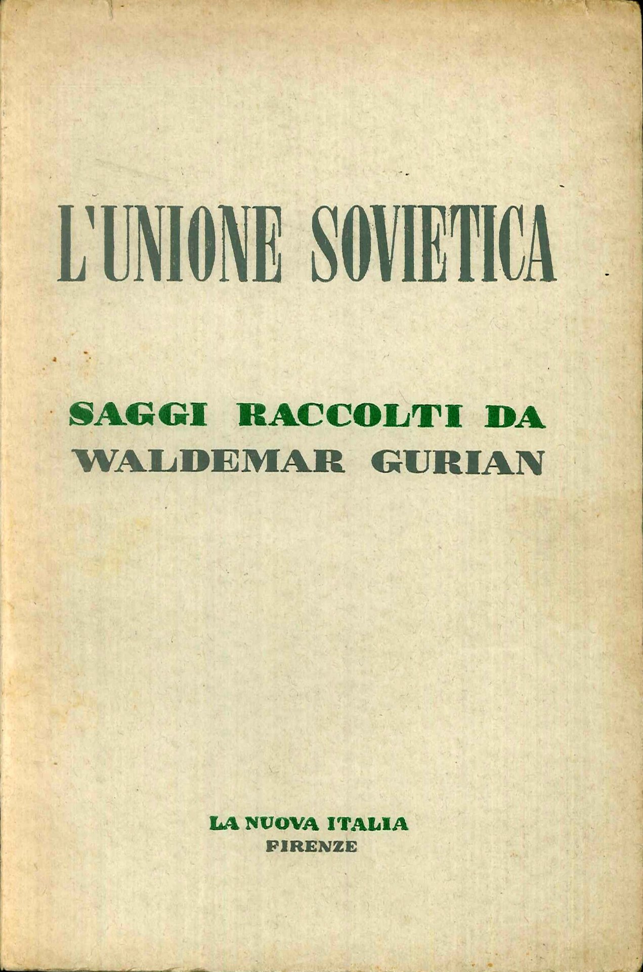 Saggi di Waldemar, Gurian, Michael Karpovich Naum Iasny Philip E. Mosely. Manca Sovraccoperta. Scandicci, 1954; br., pp. 290, cm 13,5x20.