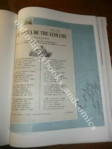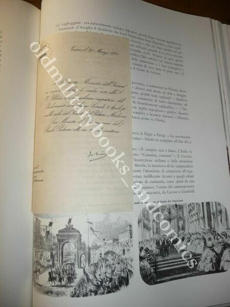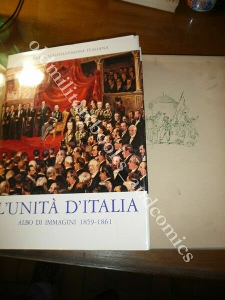 TITOLO: L'UNITA D'ITALIA ALBO DI IMMAGINI 1859-1861 ?L'Unita d'Italia. Albo d'immagini 1859 1861? DESCRIZIONE: ?Torino: ERI Edizioni Rai Radiotelevisione Italiana 1961. ?In - folio (380x270mm), pp. (10), 380, legatura editoriale t. tela, tit. in oro, con sovraccoperta figurata a colori. Sguardie figurate, interamente illustrato n.t. e f.t. con centinaia di tavv. a colori e in b.n. riproducenti stampe, dipinti, caricature, foto dell'epoca. 42 facsimili a colori f.t. di autografi e di documenti. Impresso su carta patinata speciale opaca delle Cartiere Burgo di Torino; custodia editoriale in cartone figurato. CONDIZIONI: Ottime, custodia con segni sporco. PESO / WEIGHT: 4200 gr. without package
