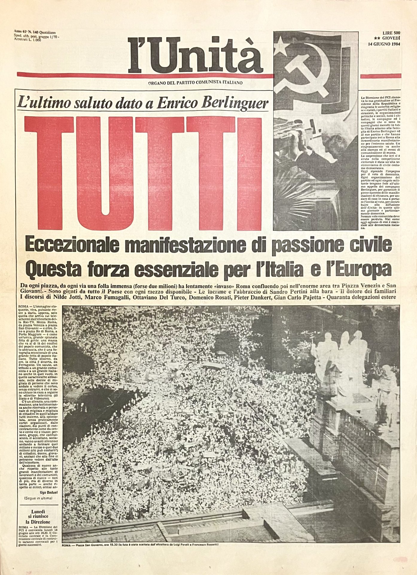 L'Unità. L'ultimo saluto dato a Enrico Berlinguer. N. 61. 14 giugno 1984