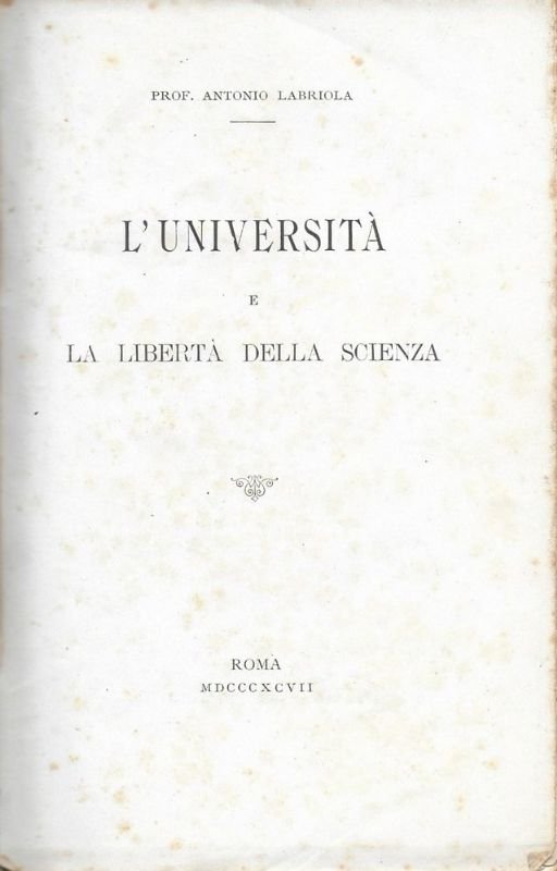 L'Università e la libertà della scienza - Discorrendo di Socialismo e di Filosofia.